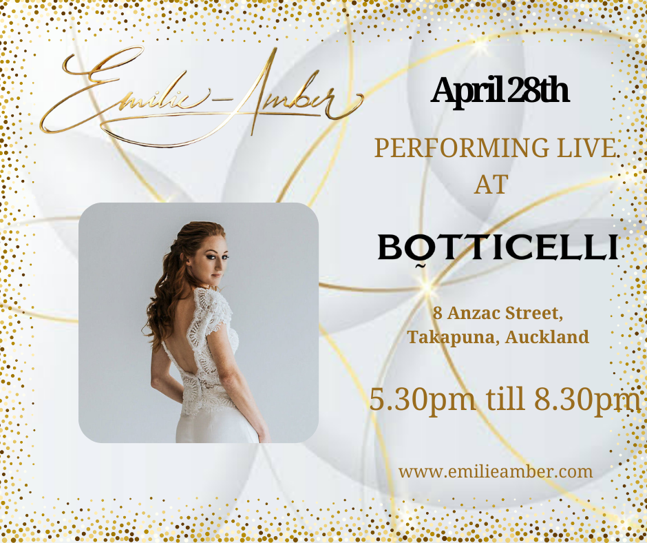 Emilie-Amber will be performing live at Botticelli Restaurant & Wine Bar on Sunday the 18th of August. From 5.30 till 8.30pm
